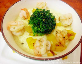 - 4. 虾蔬起锅加入泰山橄榄油一同搅拌后摆饰在蒸蛋上即可!