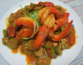 先把葱姜蒜 爆香 秋葵跟小番茄