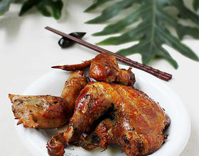 放一个铁箅子,将鸡(皮向下)摆在箅子上,盖好锅盖,熏10分钟,再关火,继续盖着盖子熏15分钟。