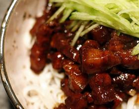a.选肉尽量选五花肉,肥瘦相间做成肉酱以后奇香无比,如果用肉末代替滋味就会少很多!b.甜面酱已经有甜味,但是我习惯再加一些糖,如果不喜欢吃甜一点的可以省略。c.面条如果不过凉水容易粘连,但也有另一番风味。d.六必居干黄酱一定需要的,味道比普通豆瓣酱要好,而且因为是浓缩的所以一包可以做一大锅。这样一大碗炸酱面就做好了,肉酱不仅可以拌面,还可以卷饼。不建议拌饭因为感觉很奇怪。。。再配上一瓶燕京!梦回北京!
