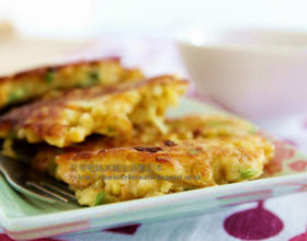 - 1. 材料准备:红萝卜庖丝、胡瓜庖丝(不用削皮)、玉米粒洗净、青葱庖丝or葱花、起司块庖丝、蛋和面粉放入一个大锅子里。
