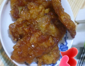- 8. 调汁前就被油浇到了所以没有继续拍照,而且调的料汁也少了!调好的料汁,白醋、陈醋、糖。热油放进去熬,之后放水淀粉勾芡,将炸好的肉放进锅内翻炒上料。