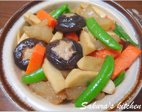 - 7. 至香味出来陆续放入冬笋,蹄筋,红萝卜