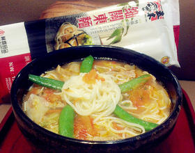 - 3. 烧一锅水,水滚后放入五木细关东面煮至熟,捞起沥干水份盛于碗中备用。