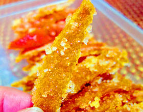 1、2、也可以用柳丁或是大一点的橘子做看看3、糖渍时可放些柠檬汁一起煮,可延长保存时间 手工的食物还是放肚子比较好别放太久4、还可以沾裹巧克力变成高级的橘皮巧克力