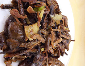 锅加油,葱姜、花椒粉爆锅下入肉丝煸至变色