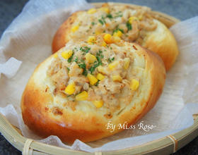 - 1. 滤掉鲔鱼罐头内的盐水或浸油,再将鲔鱼玉米馅所有材料拌匀备用(用盐水鲔鱼则不需再加盐)