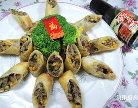 热锅加油,爆香香菇,接着入油葱酥拌炒,加入芋头丝,芋头丝炒透之后,加入玉米粒拌炒