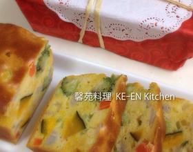 松饼粉200g、豆浆100cc、加入蛋2个、橄榄油100ml、搅拌后加入烫熟蔬菜