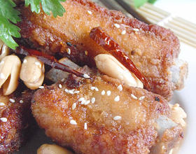 诗心片语:1:排骨一定要先腌制足够的时间,这样才能入味。2:加干淀粉的时候,不要用手去拌。翻抖更均匀。3:蒜瓣一定要煸香,才下入排骨和花生翻炒。
