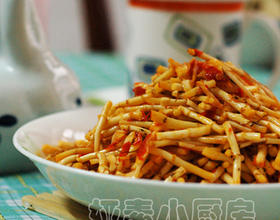 快炒出锅。快炒就脆脆的,炒老了就粉粉的。看自己喜欢。