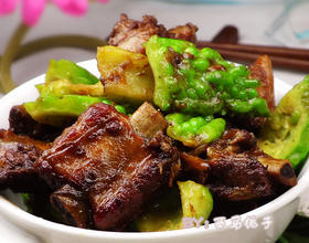 炖至排骨快熟时加入焯水的苦瓜和盐。