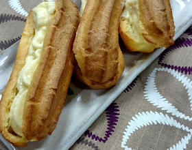 - 6. 待要吃的时候,以刀将皮中间切开(不切断),放入卡士达酱即可。
