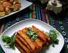 土豆去皮切条用盐水漂洗捞出沥干,香菜去根洗净切断。