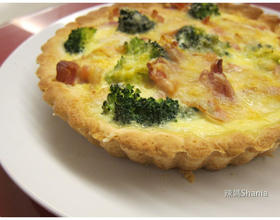 培根切片之后 煎出香味 - 5. 之后将这两样材料扑再派皮上面