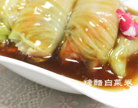 锅内放水加1勺白糖1勺白醋蚝油少许水淀粉勾芡倒在白菜卷上即可