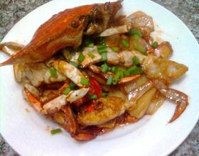 - 9. 下炸好的蟹块稍炒。