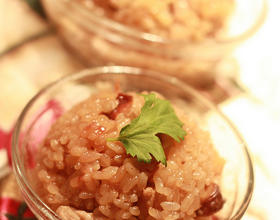 探險筆記:1.以熱水煮飯是阿瑛教的妙招,這樣會讓飯更快煮熟,可以省下一半的時間油飯熱料加熱水,油飯更快熟。2.各人吃糯米飯喜愛的口感不同,因為糯米已泡過一整夜的水,米已吸滿水份,食譜中的水量是以糯米1:水量0.7的比例,蒸出來的口感是粒粒分明,若喜愛較黏口感,比例則為1:0.8。