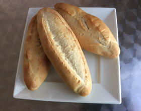 - 6. 在面包中间用刀划一条线,放入预热至420度F的烤箱中,烤箱下层可放一盆热水,并喷些水在烤箱中,以增加水蒸汽,同时面包表面也喷些水,烤8分钟后拖出烤盘再喷水在面包表面,继续烘烤,全程约20-25分钟,或至表面上色。