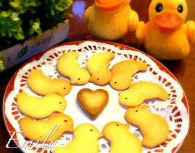 - 12. 利用小压模具压出小鸭造型放在烘培纸上