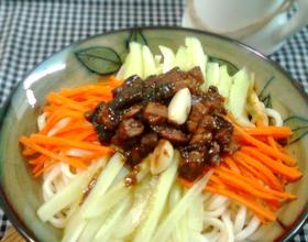 - 10. 面条过凉水,再用冷开水过一遍,胡萝卜可焯下水,也可不焯。在面条上放上黄瓜丝和胡萝卜丝,放上炸酱即可开吃,吃时拌匀。
