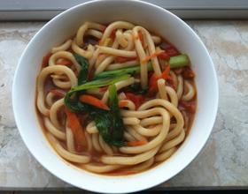 锅中水烧沸之后,下如乌冬面煮两分钟后捞出备用