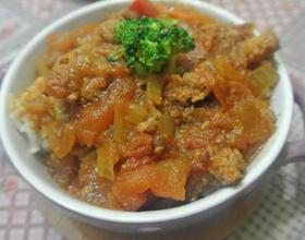 这样会让番茄吸收肉的香气油脂喔 - 4. 番茄炒软后,放入洋葱