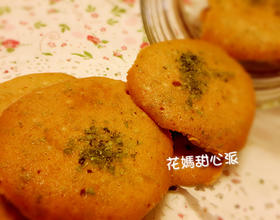 当拌好的材料放上烤盘在表面再洒些海苔粉