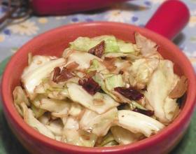 将包菜手撕成块,把粗的梗分离开,以便炒时先下锅;