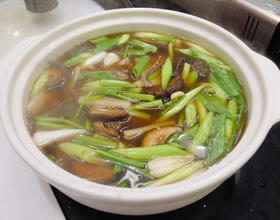 - 5. 这时候刚开始煮的水差不多煮开了,就可以把香菇连香菇水一起放进去