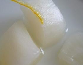 上面放塑胶袋后,压上重物,放2天让它出水 萝卜出水后,把水倒干最后放入糖、醋、柚子丝拌之均匀后..