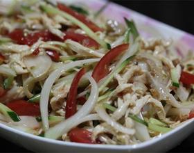 1、小秘诀2、如果想吃酸一点可挤些柠檬汁或放些水果醋小秘诀3、鸡胸肉煮熟后泡在锅里约15分钟后取出,放凉后再剥丝(切丝也可),会比较juice鸡皮不要丢,一样切丝混合,增加口感:D
