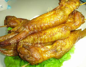 咖喱容易染色,抓匀鸡翅的时候要戴上一次性的手套,竹签要先泡水湿润,预防烤的时候着火哦