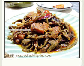 - 11. 半个小时后加入干豆角段,烧开,搅拌一下,继续小火炖20分钟。