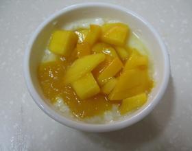 炖奶放凉后,将切成丁的芒果放至表层即可食用