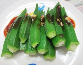 川烫后的秋葵 淋上调好的大蒜酱油膏~~就很美味