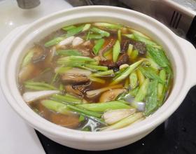 - 5. 这时候刚开始煮的水差不多煮开了,就可以把香菇连香菇水一起放进去