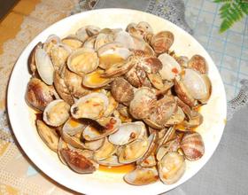 倒入花蛤一起炒,然后放入盐、鸡精、味精调味。然后翻炒,让所有的蛤蜊都受热均匀