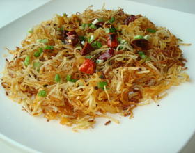用筷子划散,待土豆丝成黄色,翻面,炸两面金黄,捞出沥油待用。