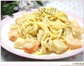 我面太晚煮..拍照拍到白酱焦掉了。_。"" - 6. 完成啦...(´∀`)第一次做...!!好吃耶XDD