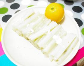 30分钟后,取出,去皮,切条(注意刚取出的山药很热,小心烫手~)