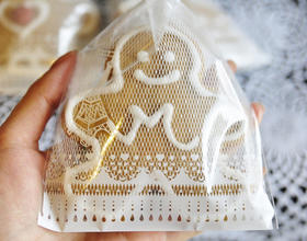 * 挤糖霜时花嘴要与饼干表面近乎垂直,距离约 2mm,饼干放在工作檯上,两只手都拿来控制挤花袋,会比较*哦!* 姜粉其实一点都不辣,吃了反而有种温暖的感觉,最适合搭配热红茶!祝大家圣诞节快乐!!! ^____^