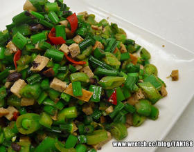 * 甜豆可以换成青椒,下锅翻炒一下就好(生一点口感好)。* 甜豆筴的份量大约韭菜的1/2 。* 怕辣去辣椒籽,只取用辣椒肉则只有椒香气。* 豆豉有干湿两种,湿豆豉(瓶装)直接入锅炒,干豆豉先用水湿一下再下锅。
