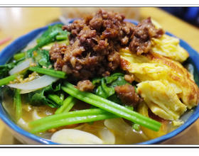 -肉燥现炒后为留住美味可以不必洗锅将洋葱放下拌炒(素食者可省略)-滚煮汤头时喜欢蒜味的可增添1~2颗蒜头滚煮增加香甜-喜欢汤头微甜者可在滚汤时加入1匙的糖增添甜度欧