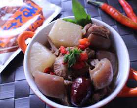 加入中药材..羊肉..酒一起炖煮1~2小时