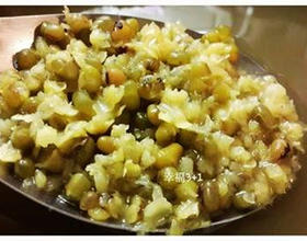 开盖放入绿豆蒜,盖锅大火煮滚,转小火煮10分钟,放入二砂糖即可。