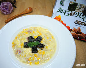 接着加入玉米酱、玉米粒、鲜奶煮滚
