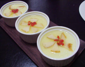 - 5. 时间到时摆入鲍鱼片及枸杞子ˊ并淋入少许鲍鱼汤汁再蒸2~3分钟即可