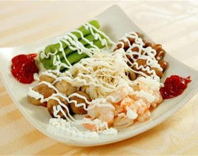 将step1~3食材放入盘中,将调味酱拌匀淋上,即成为美味的健康沙拉