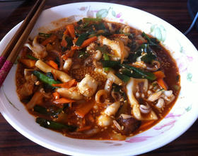 起锅后,加入些许白芝麻,就是美味又下饭韩风辣炒墨鱼。
